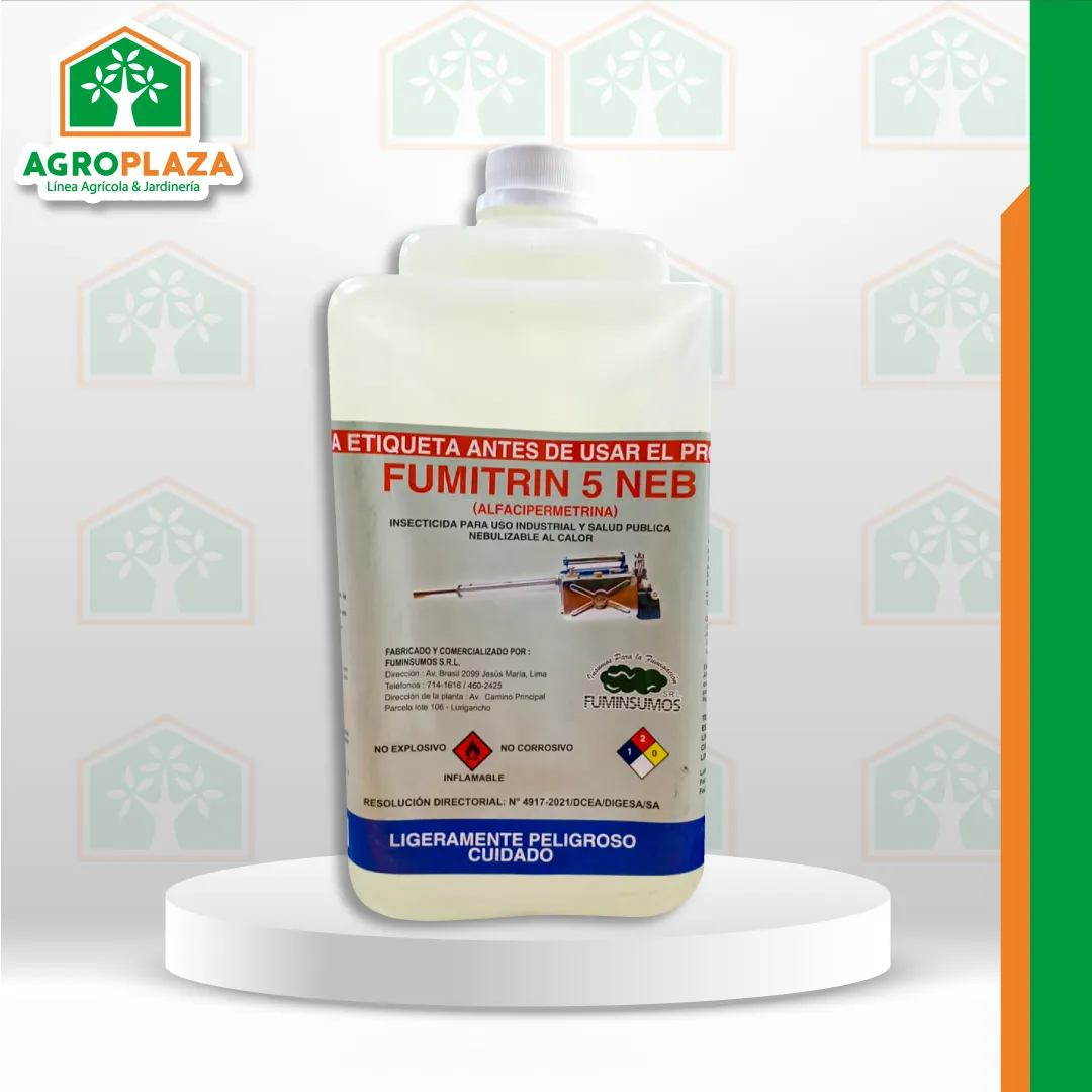 alfacipermetrina, solventes orgánicos y coadyuvantes. Debido a sus características fisicoquímicas, posee un amplio espectro de acción controlando distintos insectos plaga nocivos voladores y rastreros como moscas, mosquitos (zancudos), polillas, pulgas, cucarachas, psócidos, gorgojos, chinches y arácnidos como arañas, garrapatas, ácaros entre otros. Posee buen efecto de choque y alta impregnación. El producto se presenta listo para su uso y no necesita mezclarse con otro tipo de vehículos o solventes como diésel, keroese o aceite agrícola y, debido al tamaño de las gotas generadas por la termonebulización (entre 5 – 30 μm), puede penetrar grietas, hendiduras y acceder a zonas superiores a donde los insecticidas líquidos convencionales no llegan a alcanzar.