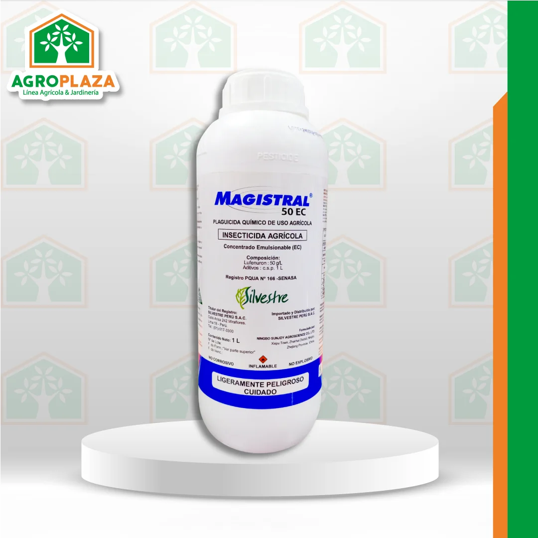 El insecticida regulador del crecimiento interfiere con la síntesis de quitina causando la muerte de larvas por ingestión.