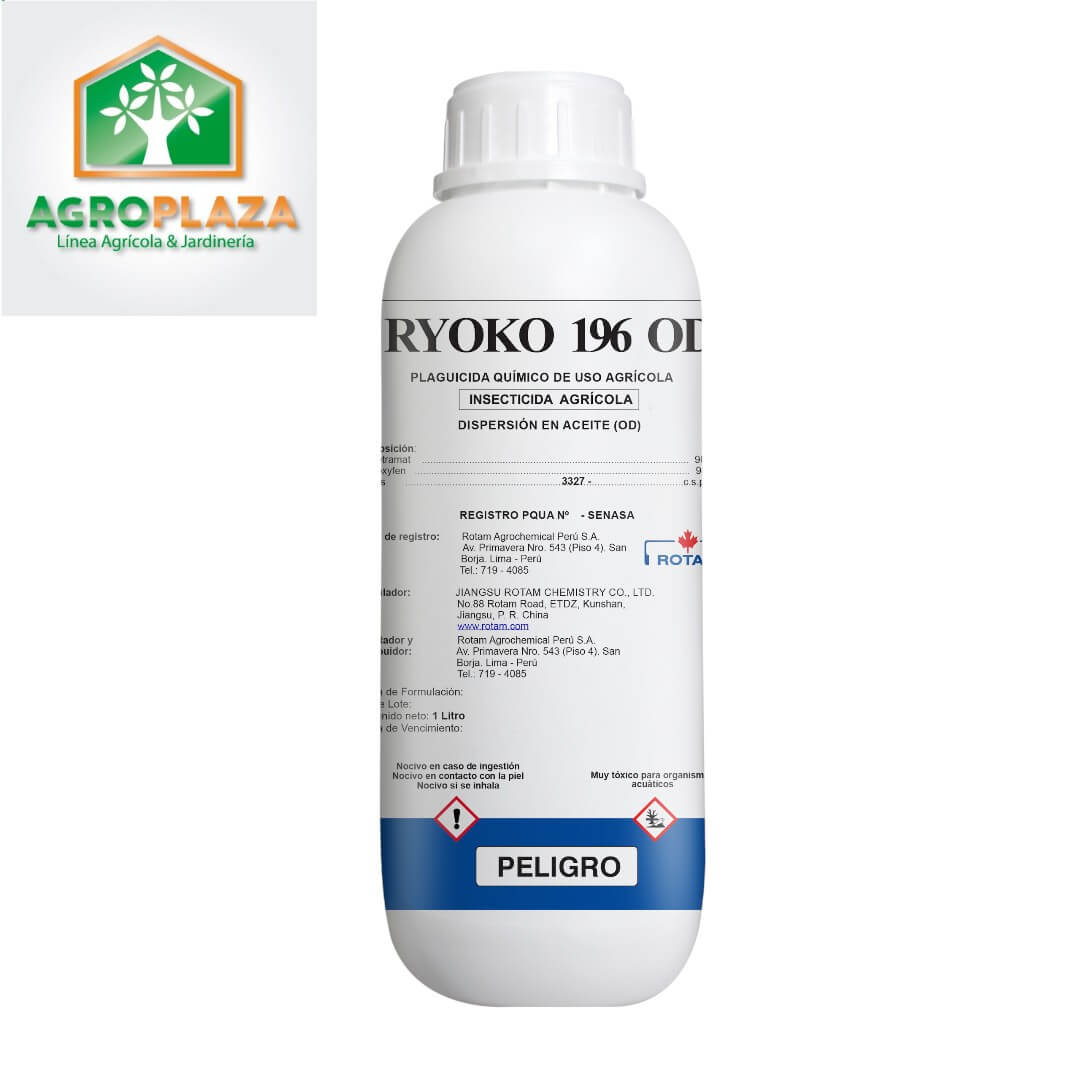 RYOKO 196 OD, es un insecticida a base de Spirotetramat y Pyriproxyfen. El modo de acción de Spirotetramat es la supresión de la síntesis de lípidos. Este MoA apunta a un objetivo bioquímico e inhibe la formación adecuada de la ACCasa. Pyriproxyfen es un mimético de hormona juvenil en insectos, suprime la embriogénesis y la metamorfosis en varias especies de insectos.