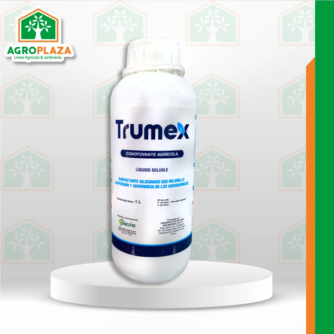 TRUMEX® es un coadyuvante no iónico el cual actúa como surfactante, humectante, dispersante, adherente y penetrante, no es afectado por aguas duras y no pierde su acción en soluciones alcalinas o ácidas que puede ser usado en un amplio rango de formulaciones agroquímicas.